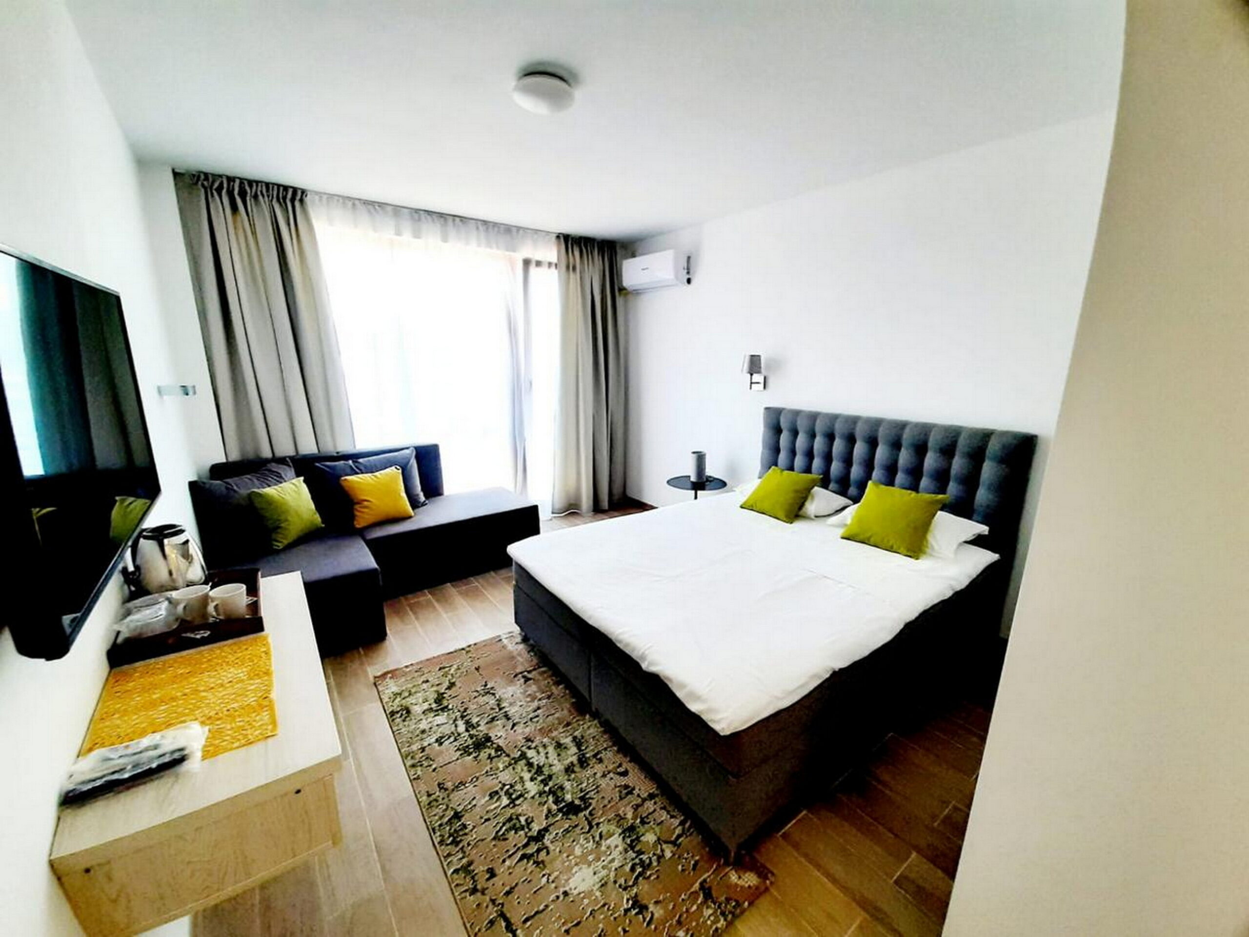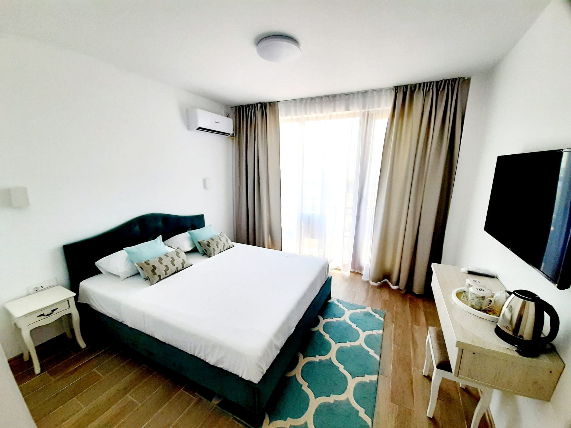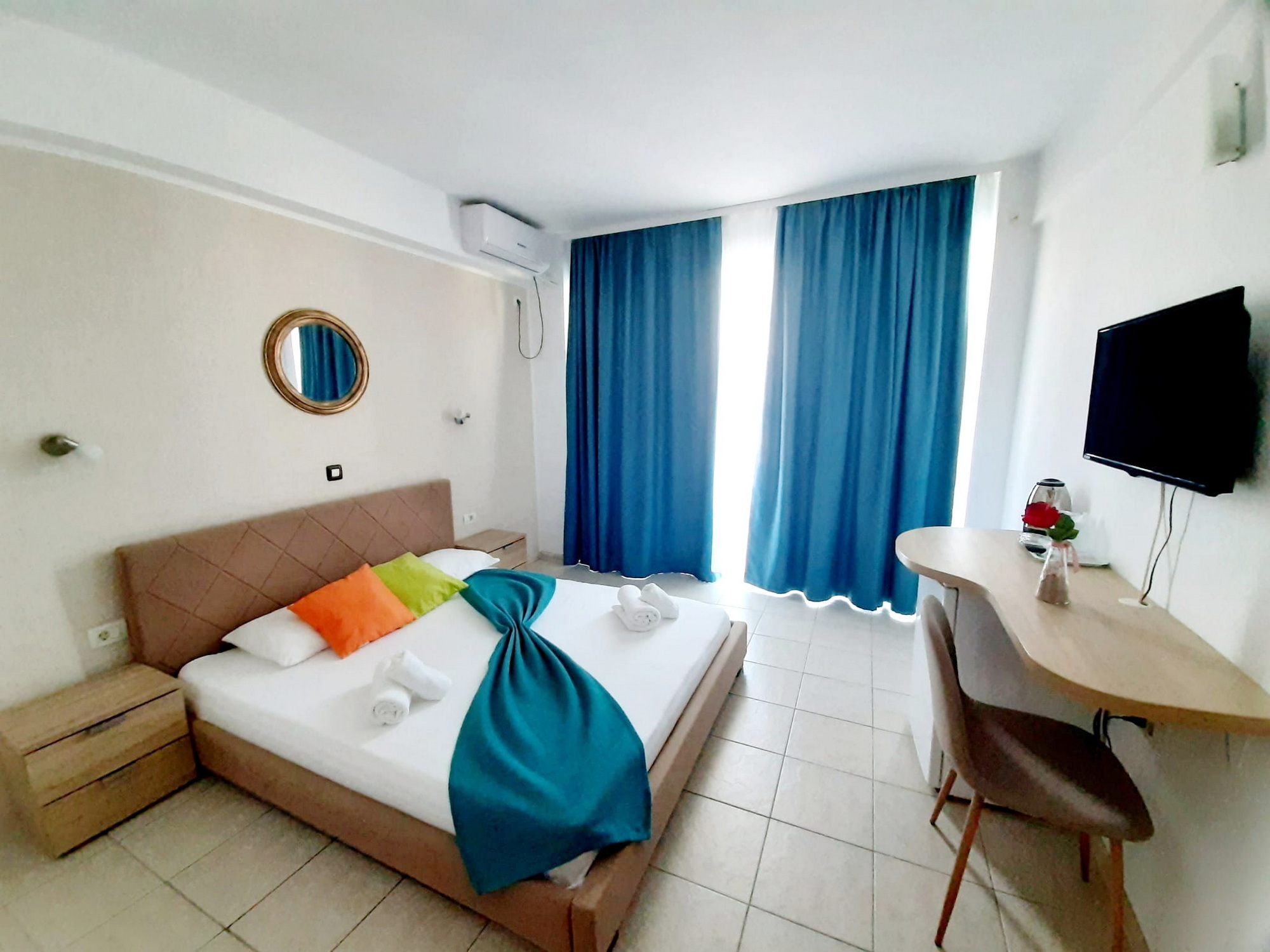 Camerele sunt spațioase, luminoase și dotate cu balcon, oferindu-ți vedere spre mare sau lac. Ai parte de confort modern, curățenie zilnică și un spațiu în care te poți relaxa cu adevărat după fiecare zi petrecută la plajă.